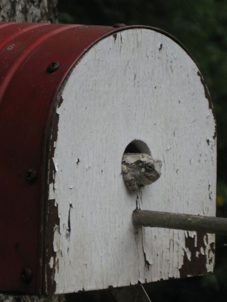 Photo: Albino frog in his new found home.